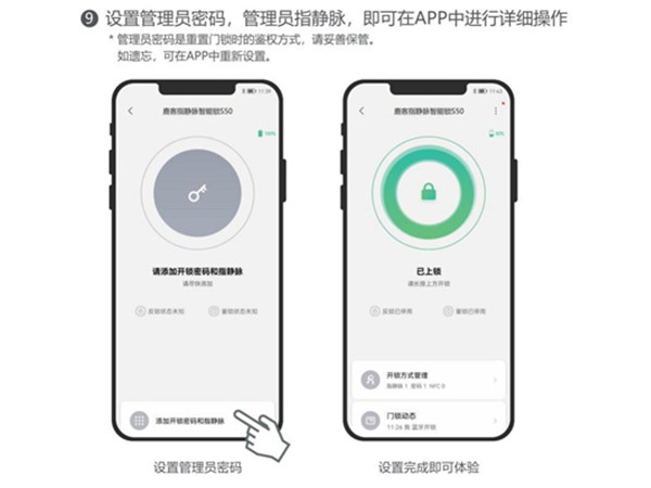 1、 添加密码: 手机开启蓝牙 手机靠近门锁蓝牙连接成功后,在手机APP上输入密码即可。