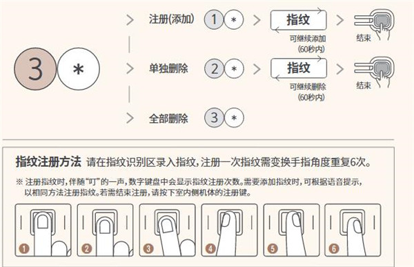 指纹注册(添加)/单独删除/全部删除