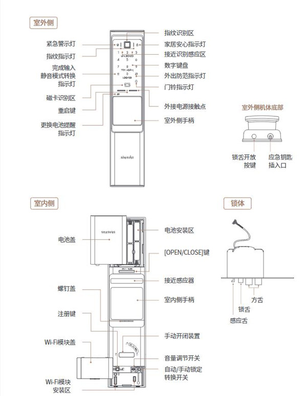 开门状态下才可注册认证方式。打开室内侧机体的下端Wi-Fi模块安装区盖,短按