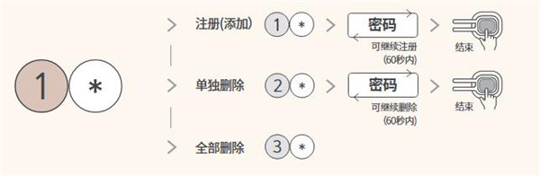 ※ 当前密码输入错误时,注册模式将自动终止,此时重新按下注册键,即可重新进行注册。