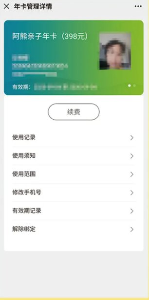 阿熊单人年卡208元(含动物园、阿熊乐园、限一人使用)