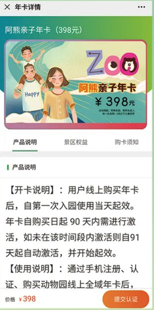 阿熊亲子年卡398元(含动物园、阿熊乐园、限两名成人和一名1.5米以下儿童使用)