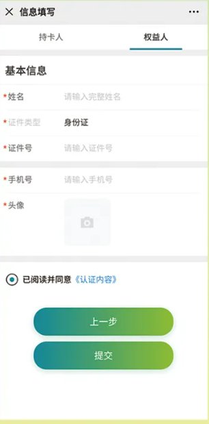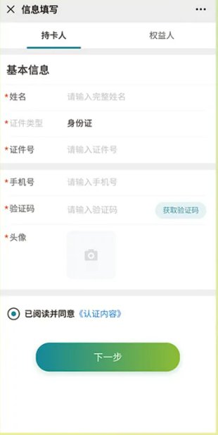3、填写持卡人信息(亲子卡儿童无需拍照)