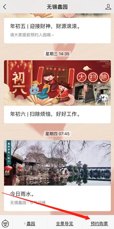 微信搜索“无锡蠡园”微信公众号,在菜单栏选择“预约购票”即可进入购票页面。