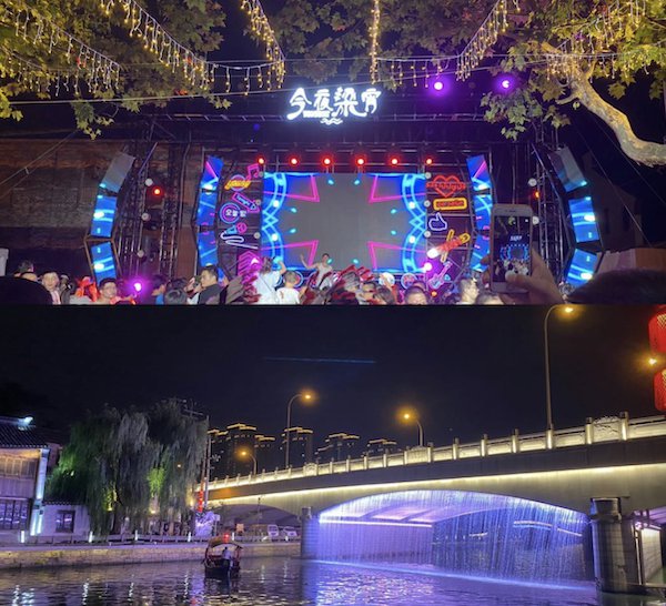 运河一碗茶、运河大排档等富有特色的本地招牌商户展现了浓浓的运河文化和无锡经典,从悠悠运河到十里长街古老的街区弥漫着时尚和活力。民俗风情的盛宴和着秋日醉人的微风,共同点燃了梁溪的不眠之夜,也将美轮美奂的江南古运河夜市画卷在人们面前徐徐展开。