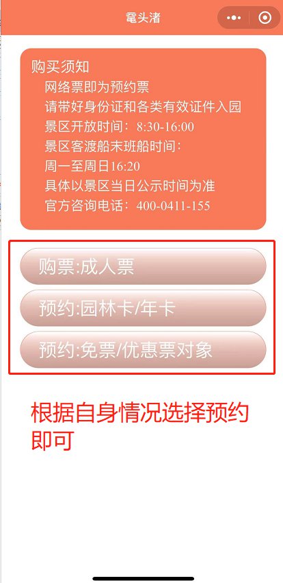 ②识别二维码,进入购票页面,根据自身情况,选择购票类型;