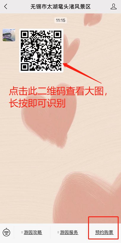 ①关注鼋头渚官方微信公众号“无锡市太湖鼋头渚风景区”公众号,在下方菜单栏选择“预约购票”;