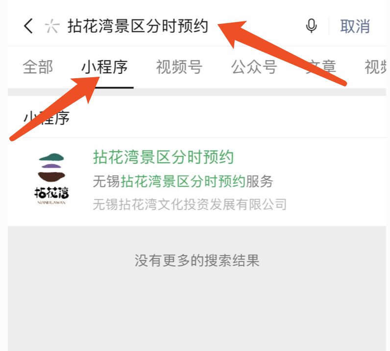 ②网上购买的区间票,游玩前需搜索“拈花湾景区分时预约”小程序,根据提示预约入园时间段。预约成功后,将会收到手机短信,游玩当日的指定时段内刷身份证入园;不预约或预约未成功,则无法入园