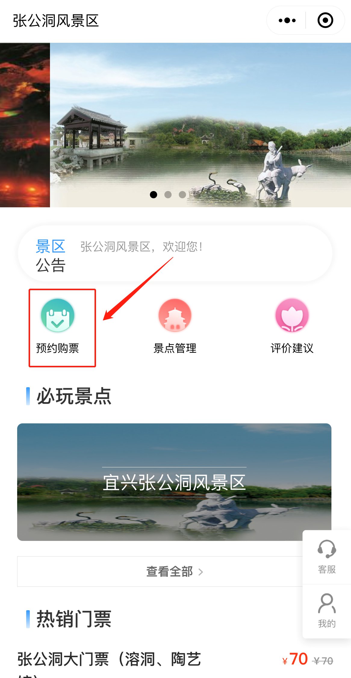 预约入口:微信搜索“张公洞风景区”-首页“预约购票”