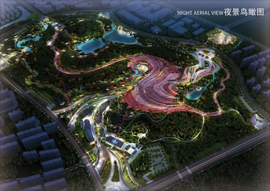 蟠龙山公园在设计时还考虑了道路的合理规划,设置主入口4处、停车场6处、一条主干道环绕整个园区,次干道连接公园主体与山源文化广场,慢行绿道镶嵌其中,辅以若干小径,让你不用担心错过每一处风景。