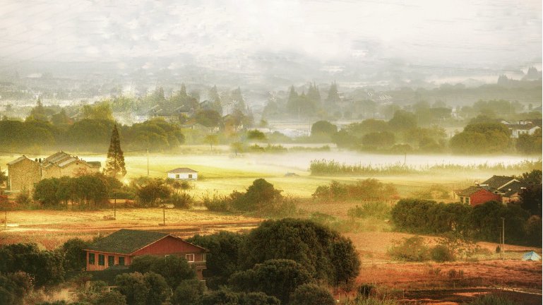 亮点:与一般的晨雾不同,斗山的晨雾位置较低,俗称“矮脚迷路”。晨光中,轻纱薄雾在村落和林间弥漫,在田野与河塘边缭绕。犹如仙境一般的美景,吸引着无数航拍爱好者前来拍摄、采风。