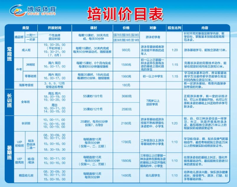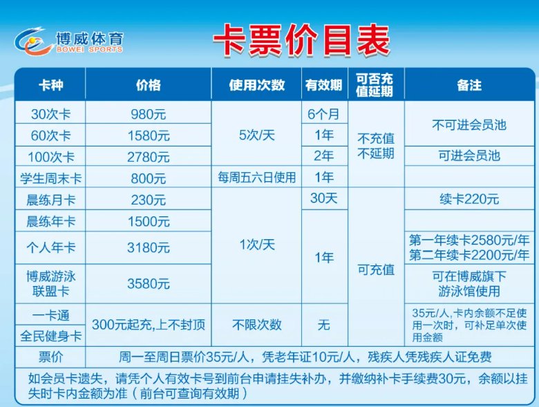 无锡新体育中心游泳馆卡票价目表+培训价目表