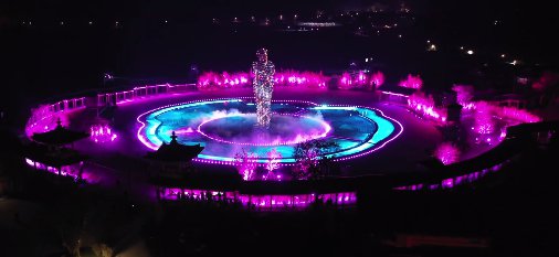 微笑广场的新园林景观,结合水下舞台装置、全息数字影像屏、雾森、景观环境艺术照明和高流明激光投影五大视觉演绎手法,通过人与景与物与情的完美结合,缔造了360°沉浸观演的梦幻表演景致,声动、舞曼、水影、光驳,微笑广场点亮的夜晚,让人醉于江南之美,宛若画中游。