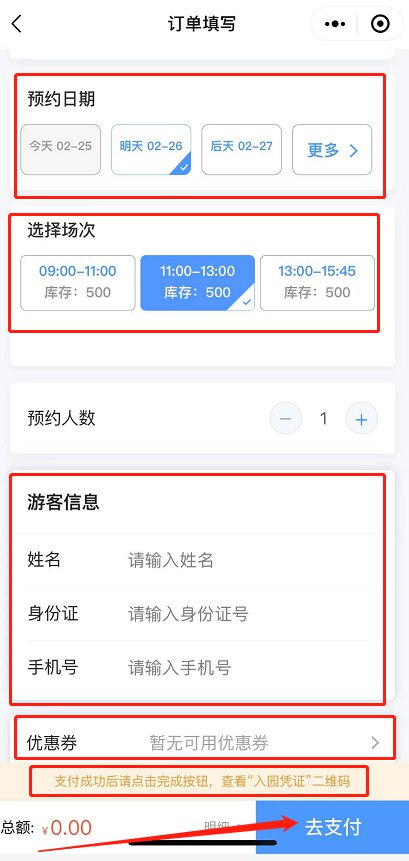 支付成功后,请点击完成按钮,即可查看“入园凭证”二维码。