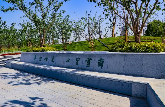 集颜值与植物科普于一体的全新公园。场地里有三座人行天桥,作为联通南北两岸步道和周边街区的纽带,7公里的慢行游步道,两侧布满了种植的鲜花,万寿菊、火炬花、樱花树、水杉林,各类植被错落有致地布局在近10米宽的沿河绿化带上,满眼的郁郁葱葱。