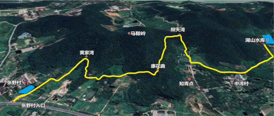 “状元古道”起点为张野村,途径孟湾、小茶场、康花曲、状元山、照天湾、知青点、中湾生态林、湖山水库,主要路往返全长10公里,集生态风景和历史人文于一体,是一条充满野趣的环山探险徒步古道。