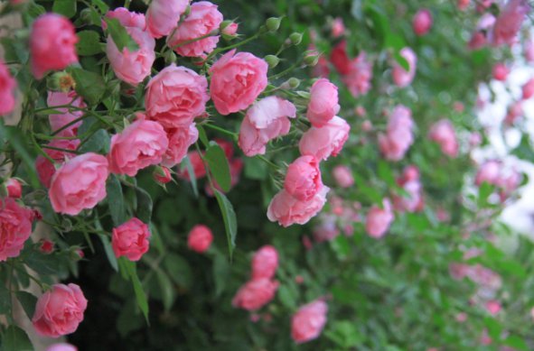 在阳山桃源东路、桃源南路、桃源中路等沿路,随处可见一簇簇、一团团的蔷薇花,恣意地、灿烂地开着,不经意的邂逅,一天都会有好心情